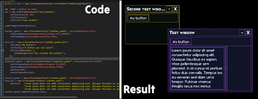 And so Echo Chamber was born, as an add-on to Echo. It makes it easy to create a window, add a panel, slap some controls on there and have a usable tool on screen within 10 minutes. Not only can you log your debugging calls in an easily filterable and saveable way, but now you can view those debug messages in-game, AND build your own bespoke interface to interact with your game in whatever manner you see fit for debugging.