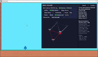 The important bit: this is all happening live inside your running game. The player, camera, particles, whatever can keep going while you step your enemy AI one frame at a time. It feels a bit like having a tiny dedicated debugger just for a single state machine.